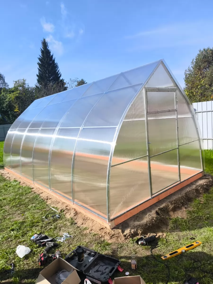 | «То что нужно при наших погодных условиях. На Урале погода непредсказуемая, без теплицы никак не обойтись, выбрал большую, высокую, широкую, получил теплицу на следующий день, неожидал такого сервиса, думал недельку придется подождать. Мастера установили фундамент на брусе, после уже саму теплицу, ожидал что будет меньше, но когда вошел в готовую, уббедился что это то что мне нужно было, идеальный простор.» |